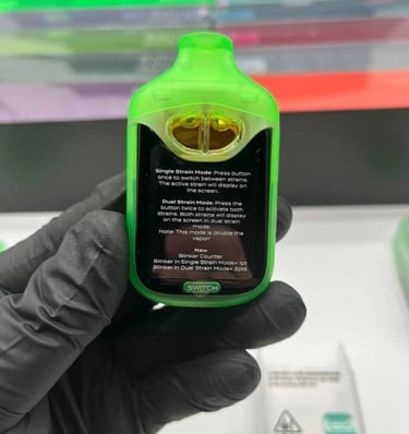 •Dual-strain switching in one disposable means two curated taste profiles in a single device, reducing the need to carry multiple pens or carts on the go according to multiple product listings describing “Switch” as a dual-tank or dual-flavor configuration .